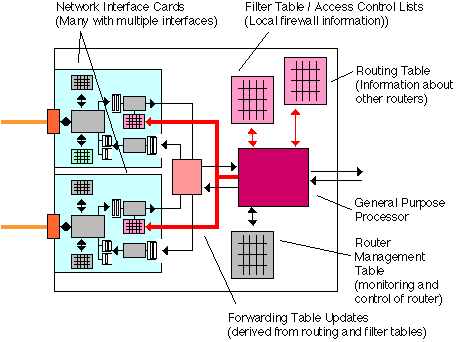 The first first two tasks are considered first, and concern packet forwarding. The final task, may in some routers be performed by a separate processor.
