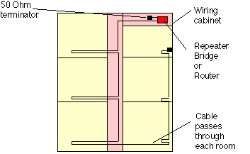 10B2 cabling is flexible and the network may be constructed in any convenient way by simply connecting all the NICs to the cable segmemt (see below).