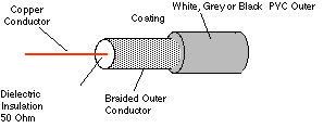 One form of cabling supported by Ethernet is low-cost 50 Ohm coaxial cable, as shown in the figure below. This type of cable is cheap to purchase and is flexible. It is very easy to install. It became known in the communications industry as "Thin Ethernet", so called to differentiate it to "Thick Ethernet", which was specified for early Ethernet LANs. The official name for this cable is 10 Baseband2 (10B2), indicating that it is specified for baseband communications (i.e. not modulated signals) at 10 Mbps over a cable segment and targeting a cable segment length not exceeding 200m (the "2" in "10B2"). The group recognised that RG58 flexible coax had a lower specification than the 10B5 cable, and the low cost BNC connectors introduced more reflection. However, the result was less good than they hoped, and the final actual specification specified an upper limit of 185m.