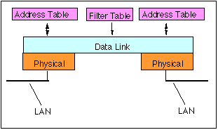 In some managed bridges, a system administrator may override the normal forwarding by inserting entries in a filter table to inhibit forwarding between different work groups (for example to provide security for a particular set of MAC addresses). This may enforce a security policy separating different work groups located on each of the LAN interaces. Filters are typically set based on some combination of the source address, destination address, or interface port. Frames that match entries in the filter table will only be forwarded to specific configured ports. This can be used to implement security polcies and also to constrcut Virtual LANs. This could be used, for instance to permit only Etherenet Interaces with a specific MAC address to be connected to a specific port, or to allow only frames with specific source address to be forwarded to a specific set of MAC addresses.
