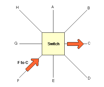 Once an address is learned, a switch forwards a frame to only the required interface/port. By sending the frames only to parts of the network where it need to go, the switch reduces the number of frame that need to be sent on the other LAN segments (and hence the load on these segments), increasing the overall performance of the connected LANs. The switch also improves security, since frames only travel where they are intended (and can not in this case, for instance, be observed by an unauthorised computer attached to segment A).