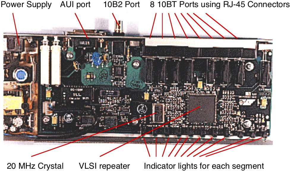 Hubs are a form of repeater for an Ethernet LAN which has multiple ports (they are sometimes also known as "multi-port repeaters" or "active star networks").