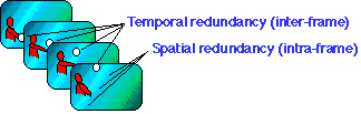 Temporal redundancy arises when successive frames of video display images of the same scene. It is common for the content of the scene to remain fixed or to change only slightly between successive frames.