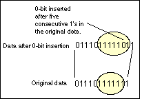 The flag sequence must never occur within the content of a frame otherwise it could be confused with an intentionally sent flag. A technique known as 0-bit insertion is used to prevent random data synthesising a flag. The technique is said to make HDLC transparent, since any stream of bits may be present between the open and closing flag of a frame. The transparency is achieved by encoding the data by inserting a 0-bit after any sequence of 5 consecutive 1's within the payload, as shown: