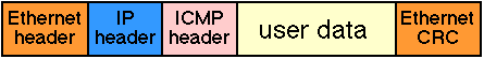 Encapsulation for a complete ICMP packet (not showing the Ethernet preamble)