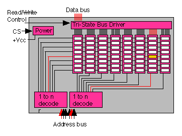 Static RAM is composed of D-Type Flip-Flops, and is extremely fast, however it is also expensive. It is therefore usually reserved for applications requiring a high speed (such as graphics display memory or cache memory).The main computer memory is usually formed from Dynamic RAM (DRAM), which uses an array of "capacitor" storage elements. Although slower than SRAM, it is also much cheaper, and therefore it usually possible to buy many MB of Dyanmic RAM per computer.