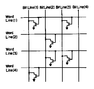 The diagram below gives an idea of the implementation of a ROM. The outputs of the open-drain transistors are logic '0' (when selected by a logic '1' on the 'word line') only if their source terminals are grounded when the ROM is program is created in silicon other wise logic '1' is maintained by a pull-up resistor.