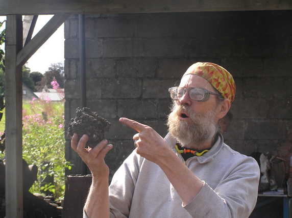 Darrell came across to Scottish Scupture Workshop in the North East of Scotland to help run the Turf to Tools project. Turf to Tools worked used classic iron age techniques to forge bloomery iron in a clay forge. Darrell used the created bloomery iron to forge replica or iron age axes that have been discovered in local archaeological digs.